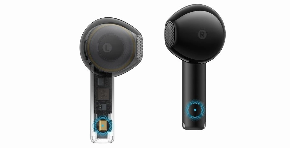Управление всеми функциями осуществляется через сенсорные кнопки на корпусе наушников: можно воспроизводить и ставить на паузу музыку, управлять громкостью, переключать треки, отвечать на звонки и активировать режим шумоподавления или прослушивания окружения.