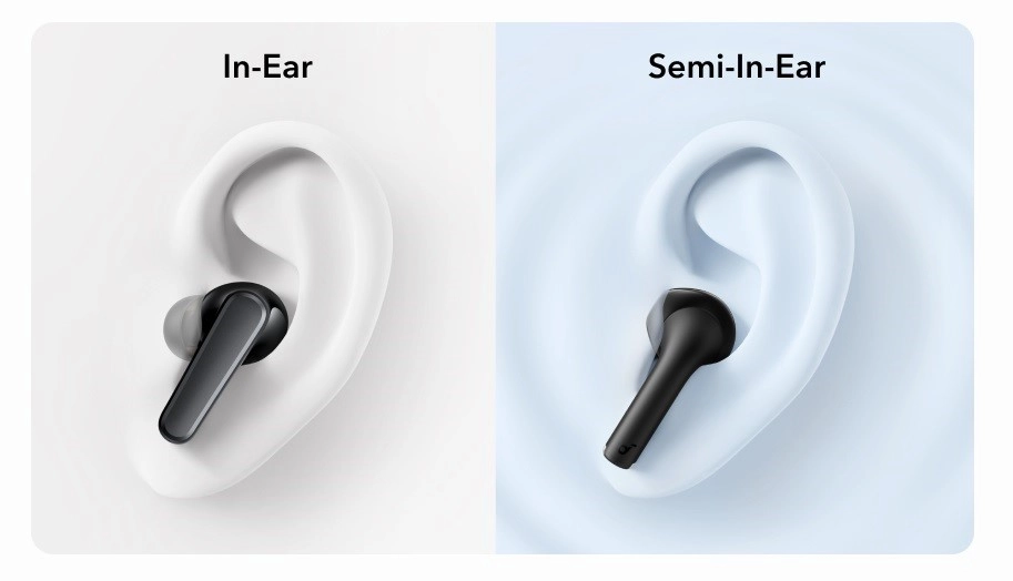 Конструкция выполнена по принципу полуоткрытой посадки (Semi-in-Ear Fit). Это означает, что они неглубоко и мягко располагаются в ушной раковине, не создавая ощущения давления, характерного для вакуумных моделей.