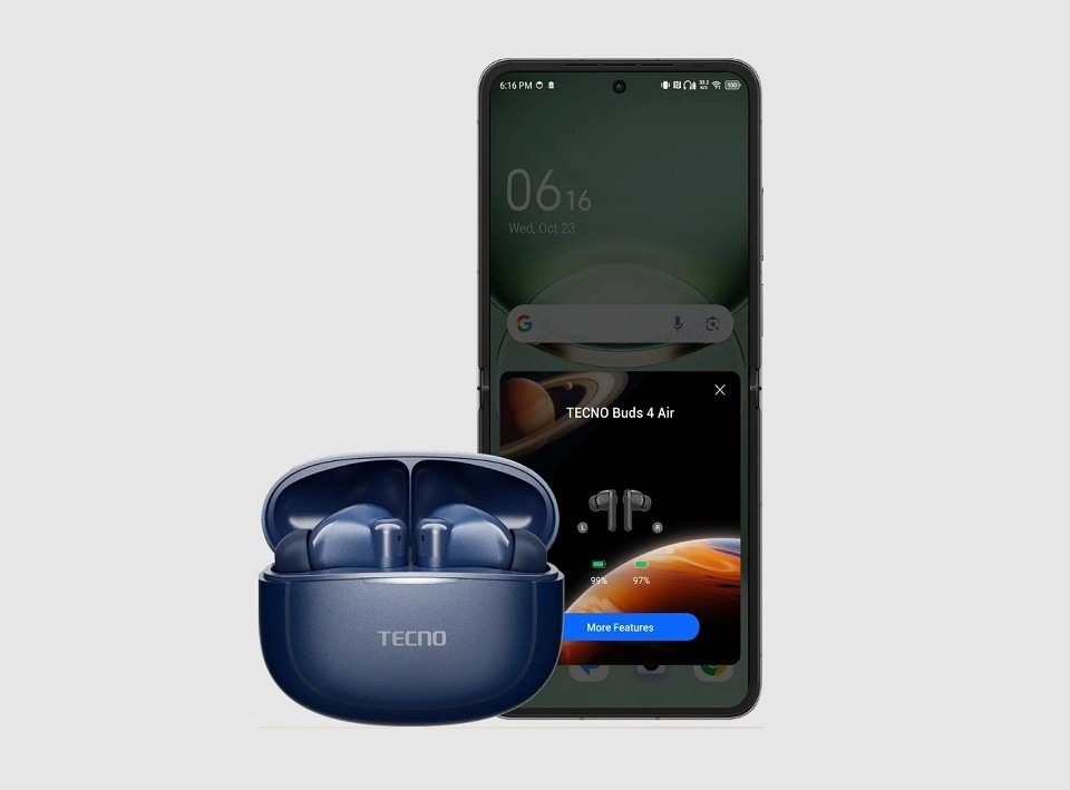 TECNO Buds 4 Air — младшая модель в линейке Buds 4, сохранившая ключевые преимущества старшей версии, которая использует продвинутую систему шумоподавления при звонках вместо полноценного ANC.
