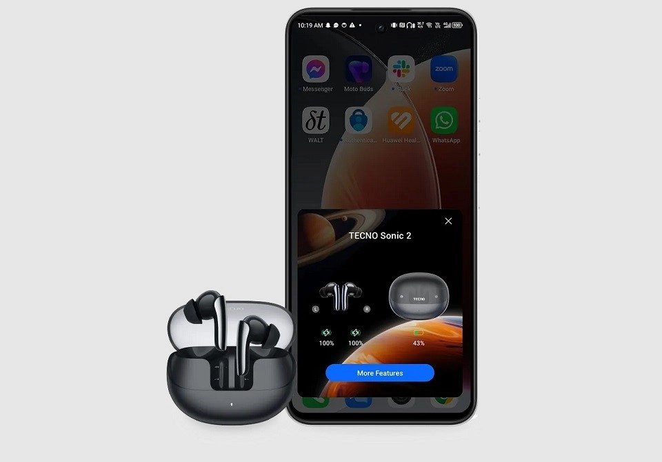 TECNO Sonic 2 — стильные TWS-наушники с активным шумоподавлением (ANC) и удобным управлением.
