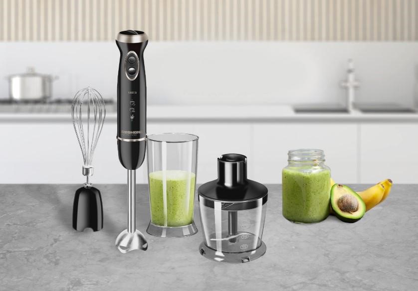 Модель можно использовать не только как блендер, но и как миксер, а также измельчитель. В комплектацию входят ножи, венчик и емкости, которые пригодятся в приготовлении различных блюд.