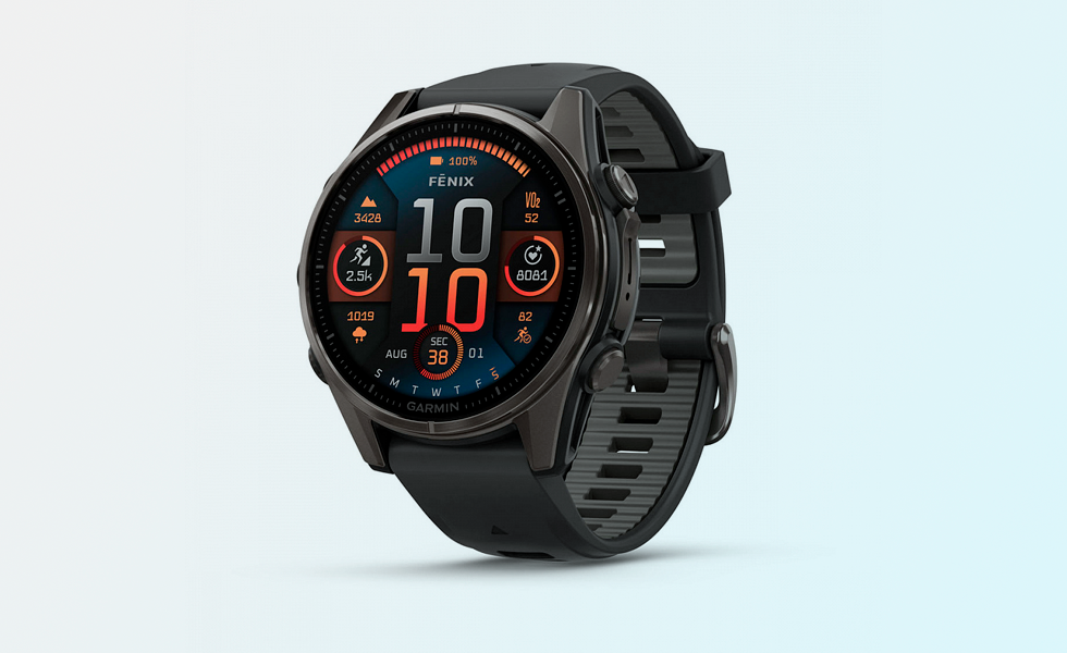Часы GARMIN Fenix 8 выглядят строго и стильно. За счет диаметра циферблата 43 мм модель понравится любителям компактных гаджетов.
