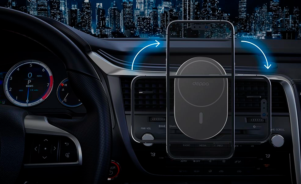 DEPPA Mage Safe Flat — удобный автомобильный держатель для смартфона, поддерживающий магнитную беспроводную зарядку MagSafe. Для фиксации аксессуара используется клипса. Модель можно вращать на 360 градусов, чтобы подобрать оптимальное положение.