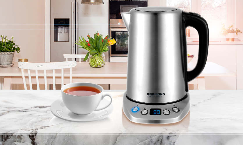 Электрический чайник имеет ступенчатую регулировку температуры и осуществляет нагрев воды в пяти автоматических режимах. Минимальный — 40 градусов — подойдет для детского питания. Режимы 60, 80 и 90 градусов — для разных видов чая: травяных, фруктовых, черных, зеленых, чтобы их вкус раскрылся максимально. Кипячение классическое – при 100 градусах.