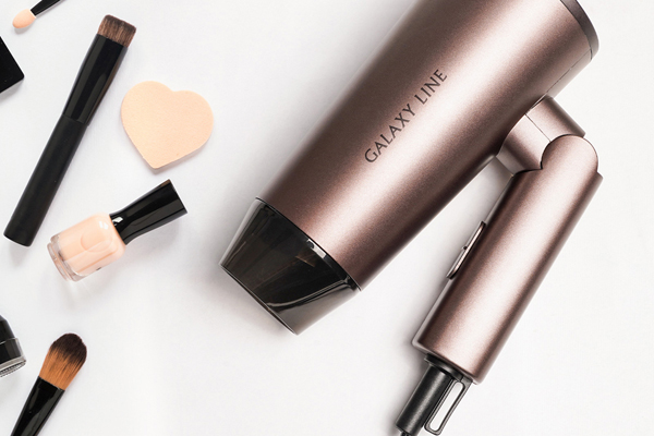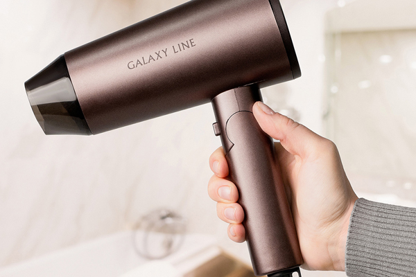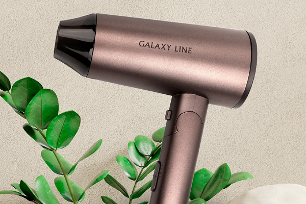 Металлизированный оттенок корпуса фена для волос Galaxy LINE GL4349 придает его внешнему виду стиль и элегантность. Подвесная петля позволяет хранить устройство, экономя место в шкафу. Если требуется поместить его в стол или дорожную сумку, можно сложить ручку прибора — так он станет оптимально компактным.