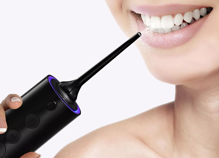 В приборе предусмотрена защита от случайного включения. Так, чтобы начать пользоваться ирригатором, нужно в течение нескольких секунд удерживать кнопку старта. При работе у прибора включается подсветка уровня заряда. Восполняет энергию ирригатор с помощью USB-шнура — от сети, компьютера или внешнего аккумулятора. Время полной зарядки составляет 4 часа.