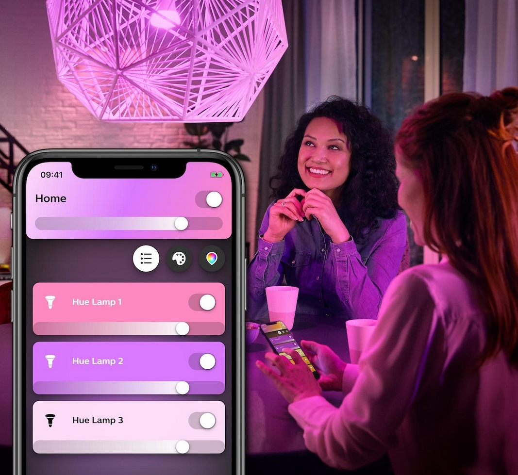 Приложение Hue Bluetooth объединяет до 10 ламп в одну сеть, так что можно управлять ими одновременно. При подключении к центру управления умным домом появляется возможность контролировать работу лампочки Hue 9W голосовыми командами для Алисы, Siri или Google Assistant.