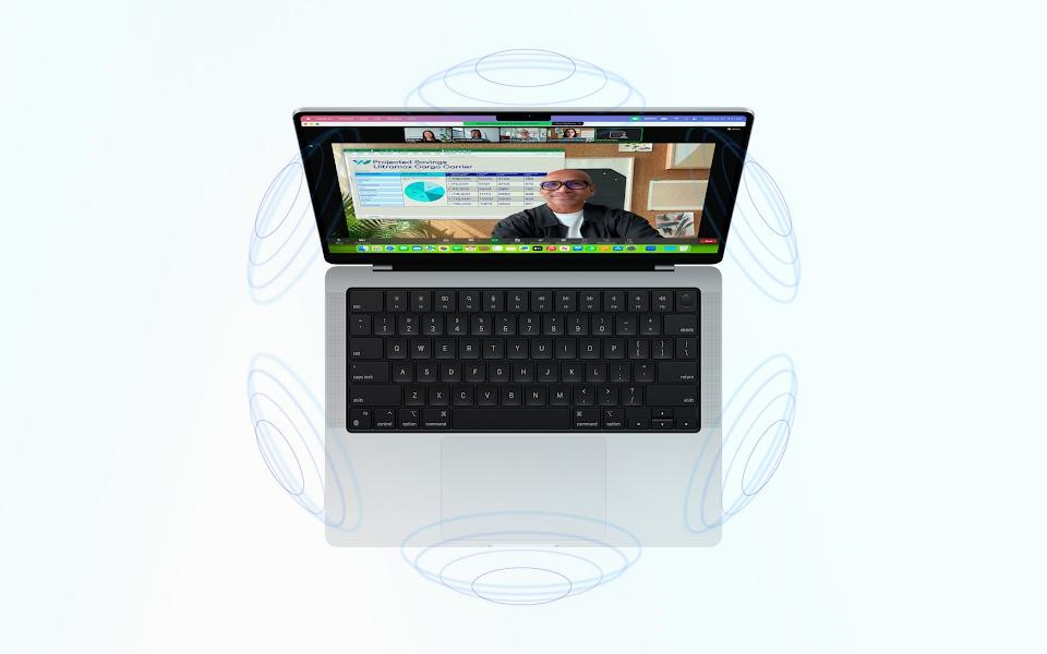 Вывести видеосвязь и конференции на новый уровень позволит вебкамера с разрешением 1080 пикселей. Чтобы владельца Apple Macbook Pro 14 было не только хорошо видно, но и слышно, она дополнена массивом из трех микрофонов. Объемное звучание обеспечивается системой из 6 динамиков — музыка и фильмы будут транслироваться со стереозвуком.