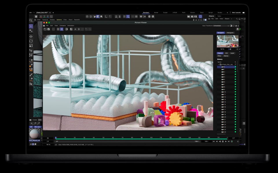 Тяжелые игры и приложения не станут проблемой для мощного 12-ядерного процессор M3 Pro. В дополнение к нему установлен графический адаптер с 18 ядрами, отвечающий за возможность без зависаний обрабатывать графику в профессиональных программах, монтировать видео, заниматься 3D-моделированием и любыми другими задачами. Хороший прирост производительности также дает динамическое кэширование и аппаратно-ускоренная трассировка лучей. Даже при одновременном запуске десятка ресурсоемких приложений устройство не зависнет и не перегреется.