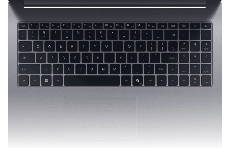 При увеличенной диагонали экрана ноутбук сохраняет портативные характеристики: вес всего 1.5 кг и толщина 20 мм делают его удобным для транспортировки. Полноразмерная русско-английская клавиатура комфортна для ввода текста.