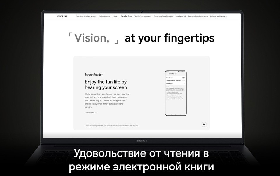 Режим электронной книги делает картинку приближенной к эффекту бумаги и снижает нагрузку на зрение.