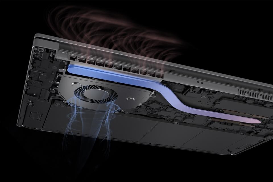 Ноутбук оснащен фирменными вентиляторами HUAWEI Shark fin. Их ультратонкие лопасти 0.2 мм быстро отводят горячий воздух от деталей, предотвращая их перегрев. При этом они не издают никакого шума.
