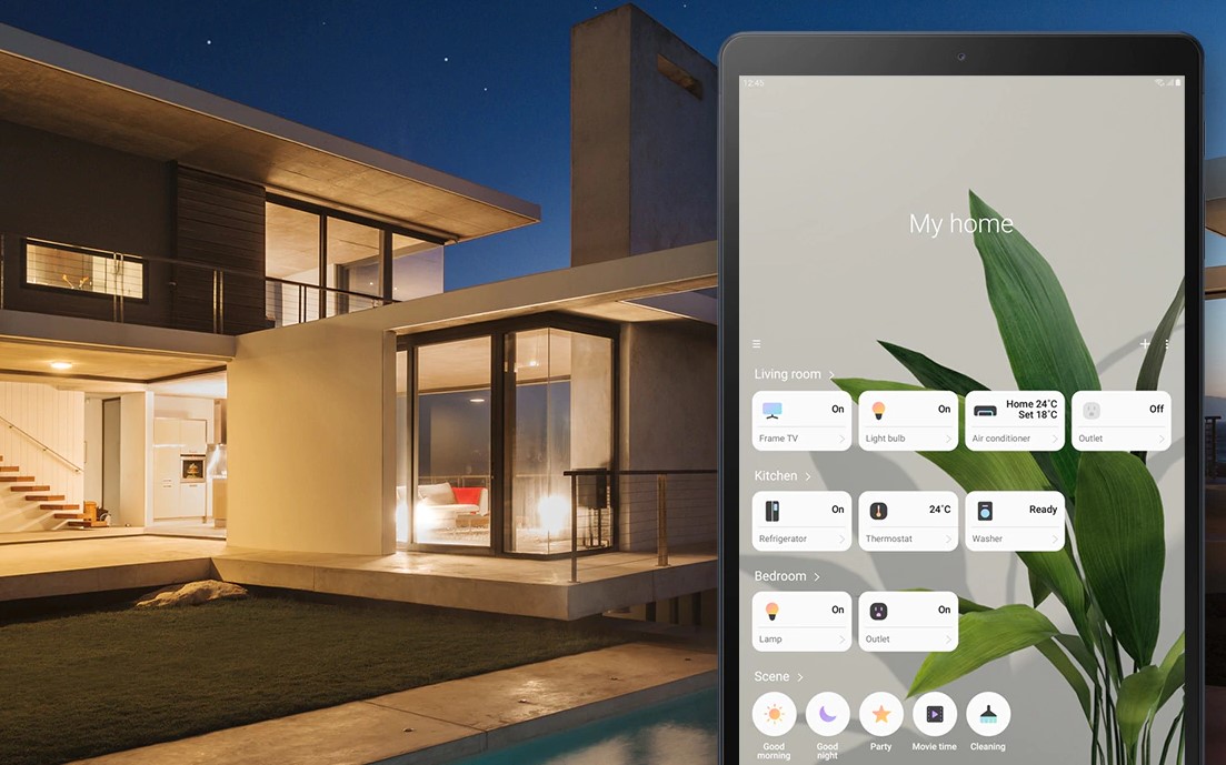 Функция Smart Things превращает планшет в пульт управления умным домом. Решение поддерживает около 400 продуктов, в том числе от сторонних производителей. Поэтому с помощью одного гаджета вы можете управлять работой телевизоров, кондиционеров, музыкальных центров, лампочек, светильников.