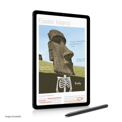 Благодаря качественному экрану с диагональю 10,4 дюйма и разрешением 2000×1200 планшет подойдет для любых задач, от серфинга в сети до просмотра фильмов или рисования — всё будет смотреться отлично. А перо S Pen, которое прилагается к планшету, облегчает работу с обычными программами и навигацию в сети. И, конечно, дает возможность делать рукописные заметки, которые к тому же предустановленная программа Samsung Notes может преобразовывать в печатный текст и сохранять в формате Word или в виде PDF и JPEG. Но самое главное, S Pen — это прекрасный инструмент для рисования: вес всего 7 граммов, толщина наконечника 0,7 мм и 4096 степеней чувствительности к нажатию! Этому перу не требуется подзарядка, оно просто крепится на магнитах сбоку от экрана или убирается в отделение на фирменном чехле и всегда готово к работе!