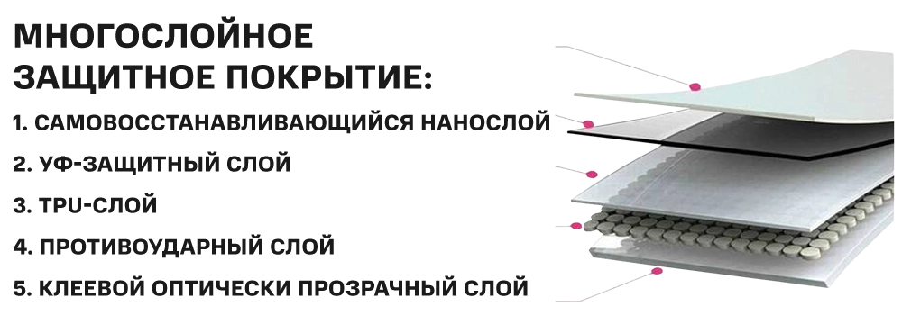 Физические свойства высокотехнологических соединений обеспечивают защиту от механических повреждений корпуса и экрана;