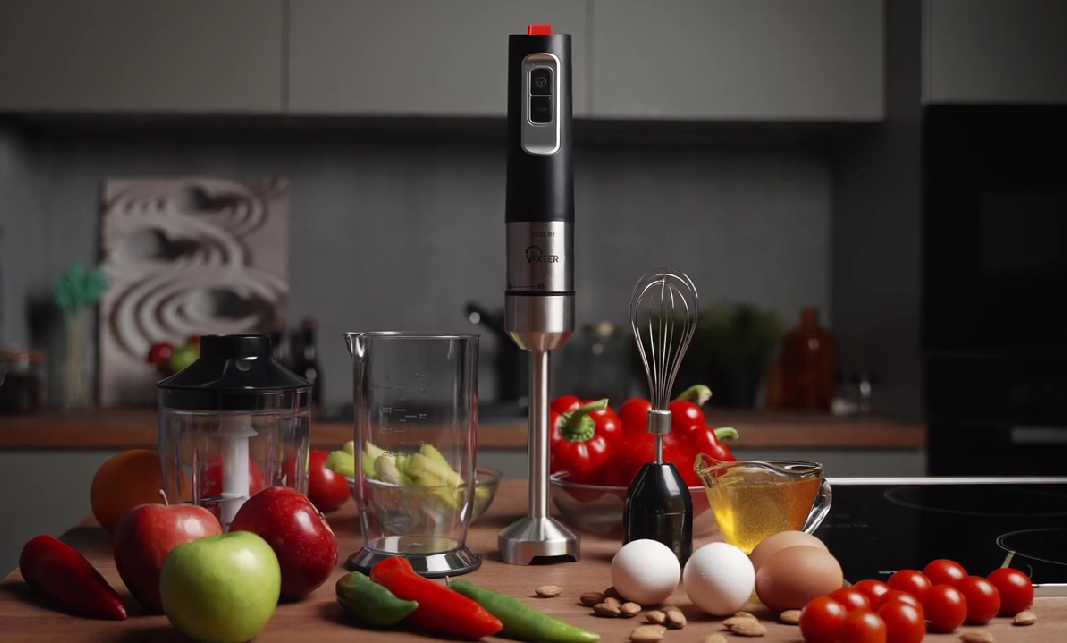 VIXTer HBW-216 — это не только блендер, но и миксер, и измельчитель с чашей объемом 500 мл. Съемные насадки легко моются, а пластик не меняет цвет при соприкосновении с цветными, сильно красящими продуктами.