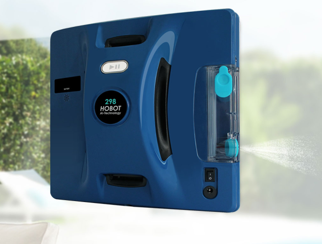 Hobot 298 — это робот-мойщик окон, который очищает стекло или другую ровную поверхность с использованием ультразвукового распыления чистящей жидкости. На 1 м² тратится 1 мл жидкости и 2.4 минуты времени. Доступно 3 режима автоматической чистки.
