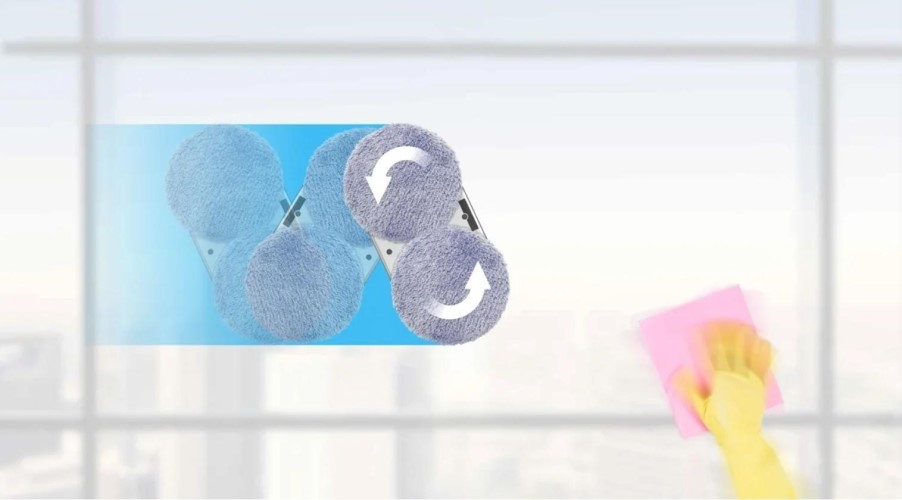 На вращающиеся диски робота надеваются специальные салфетки из микрофибры. Они эффективно удаляют загрязнения, выдерживают много циклов машинной стирки.