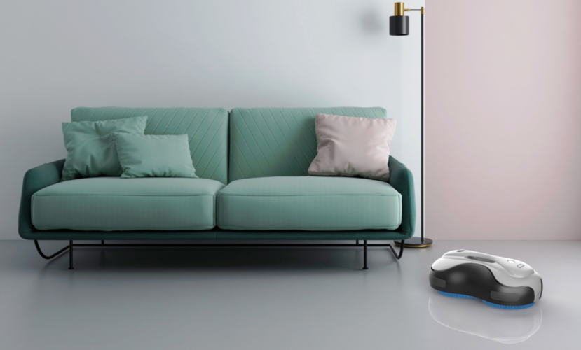 Робот-полотер имеет небольшие габариты — 375х214 мм при высоте 127 мм. Легко проникает в узкие места, под диваны, шкафы и кровати. Для переноски и использования в ручном режиме оснащен удобной ручкой. Весит немного — 1.65 кг, не вызывает усталости при мойке окон и стен.