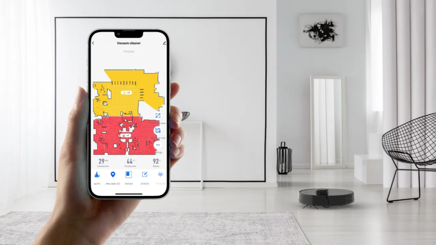 Управлять работой пылесоса можно, даже находясь за пределами дома — для этого используется приложение. Есть версии для Android и iOS. При необходимости можно отдавать голосовые команды. Устройство совместимо с различными ассистентами, от Алисы до Siri. Кроме того, в комплект включен пульт, с помощью которого можно управлять движением робота по квартире.