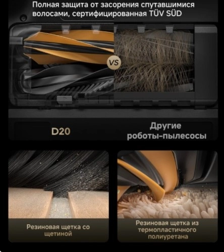 Особого внимания заслуживает система основной щетки HyperStream. Ее конструкция с двумя разными щетками специально разработана для эффективной борьбы с шерстью и волосами, которые являются главным врагом большинства роботов-пылесосов. Эта система гарантирует, что волосы не наматываются на ось, а сразу засасываются в пылесборник. Владелец избавится от необходимости постоянно очищать щетку после каждой уборки.