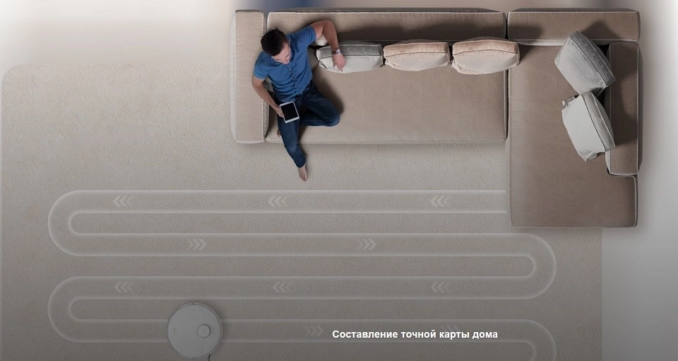 Съемная салфетка для влажной уборки дополняет основной функционал. Она равномерно увлажняет поверхность, удаляя засохшие пятна и пыль. Вместительный контейнер для пыли надежно изолирует собранные отходы, предотвращая распространение пыли и аллергенов обратно в воздух. Способность робота преодолевать пороги высотой до 20 мм обеспечивает его беспрепятственное перемещение между комнатами.