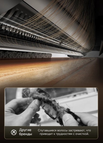 Уникальная щетка TriCut с тремя режущими кромками решает проблему спутывания волос. Она не просто собирает, а срезает и направляет шерсть и волосы прямо в контейнер для мусора. Это избавляет от необходимости регулярной очистки щетки и гарантирует неизменно высокую производительность уборки даже в домах с домашними животными.