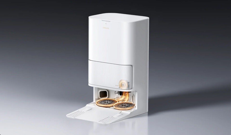 После каждой уборки робот возвращается на базу, где происходит автоматическая промывка швабр и их сушка теплым воздухом.
