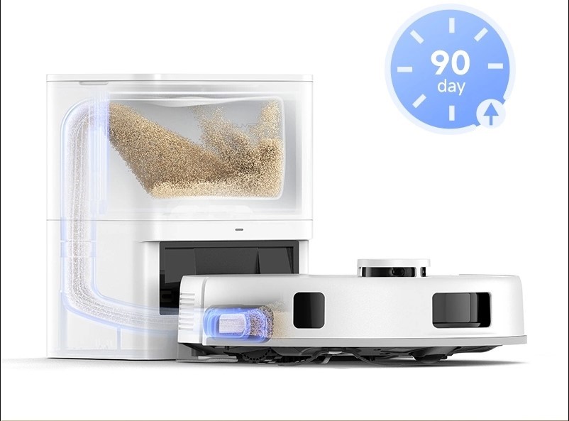 Значительно упрощает обслуживание робота-пылесоса. Для этого в базовой станции предусмотрен специальный мешок. Процесс удаления содержимого из пылесборника робота-пылесоса автоматизирован. По завершении очистки устройство самостоятельно подъезжает к станции и производит перегрузку мусора. В дальнейшем нужно лишь по мере заполнения мешка своевременно удалять скопившийся в нем мусор.