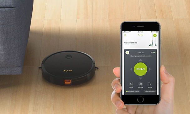 Основные кнопки — включения и возвращения на зарядную базу — находятся на верхней панели устройства. Также роботом-пылесосом можно управлять с комплектного пульта дистанционного управления или через мобильное приложение Kyvol. Реализована поддержка системы Умный дом и управление с помощью голосовых ассистентов Amazon Alexa и Google Ассистент.