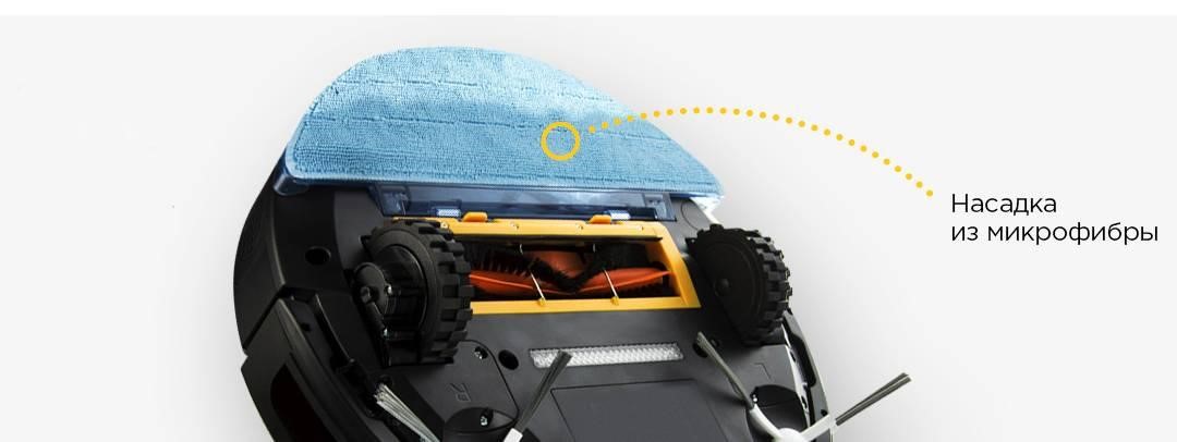 Провести влажную уборку можно при помощи тканевой насадки и комбинированного контейнера с отделами для воды и сбора мусора. Также можно выбрать интенсивность подачи воды, а контроллер в баке дозированно смачивает салфетку из микрофибры, не допуская появления мокрых разводов на полу.
