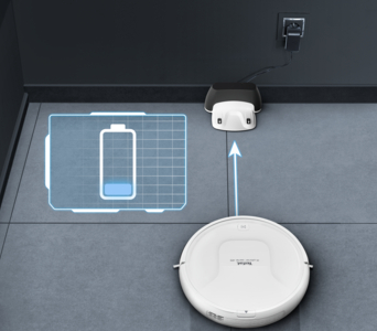 Емкий аккумулятор позволяет роботу убирать до 2.5 часов без перерыва. Этого вполне достаточно для обслуживания всего домашнего пространства. Пылесос самостоятельно возвращается на базу для подзарядки. На быстрое восстановление заряда уходит всего 30 минут.