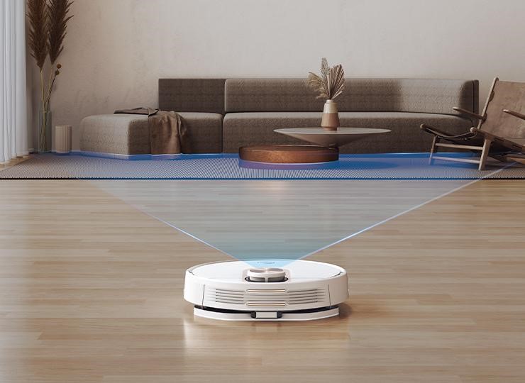Модель оснащена специальным датчиком для определения окружающей обстановки, который постоянно мониторит пространство. Это позволяет роботу преодолевать препятствия высотой до 2 см.