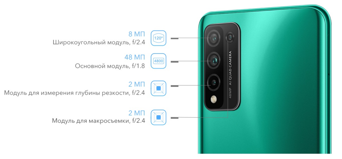 Дополнительно возможности съемки расширяют сверхширокоугольная камера, а также модуль для макросъемки и сенсор измерения глубины, который поможет размыть фон на фотографиях, чтобы они выглядели профессиональными.