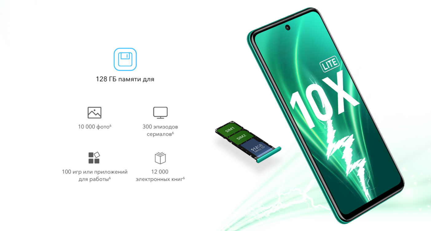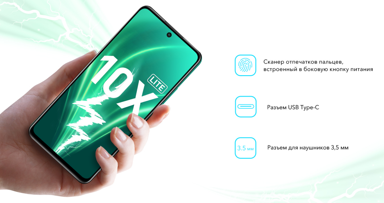 HONOR 10 X Lite — это огромный и качественный безрамочный дисплей 6,67 дюйма с высоким разрешением, вписанный в элегантный и аккуратный корпус. За счёт скруглений смартфон идеально лежит в руке, а выбранные материалы обеспечивают приятные тактильные ощущения.