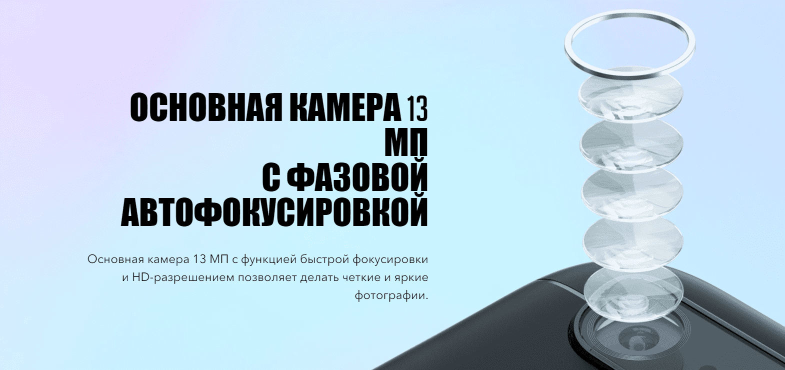 Основная камера с разрешением 13 мегапикселей имеет быстрый фазовый автофокус, чтобы вы в любой момент засняли именно то, что хотите. А фронтальная камера оснащена отдельной LED-вспышкой для ярких селфи вечером и в контровом свете.