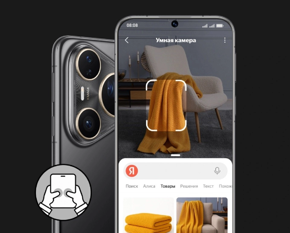 Кроме того, доступен умный поиск Яндекса — достаточно нажать двумя пальцами объект на картинке, чтобы получить по нему информацию (доступно с приложением Яндекс с Алисой с версии 25.46 и выше).