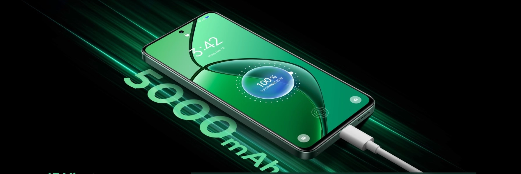 realme 12 отличается продолжительной работой от одной зарядки — емкость аккумулятора 5000 мАч. Запаса заряда хватит на день активного использования смартфона. Поддержка быстрой зарядки на 45 Вт позволяет восполнять заряд батареи с нуля до 50 % примерно за 30 минут.
