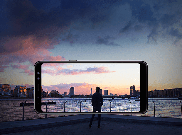 Galaxy A8 расширяет границы увиденного. Большой и красочный безграничный экран занимает всю переднюю поверхность смартфона от края до края.