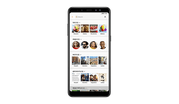 Строка поиска в галерее поможет быстро находить нужные изображения. В процессе поиска галерея анализирует фотографии и выводит подходящие изображения, разделяя их на категории.