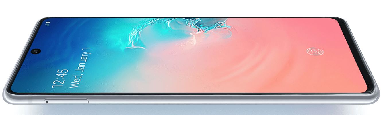 Samsung Galaxy S10 Lite выполнен из материала под названием Glastic. Он сочетает в себе износоустойчивость пластика с глянцевым блеском стекла. Выбирайте цвет гаджета под свой характер и вкусы: классический чёрный, романтический синий или нежный перламутровый.