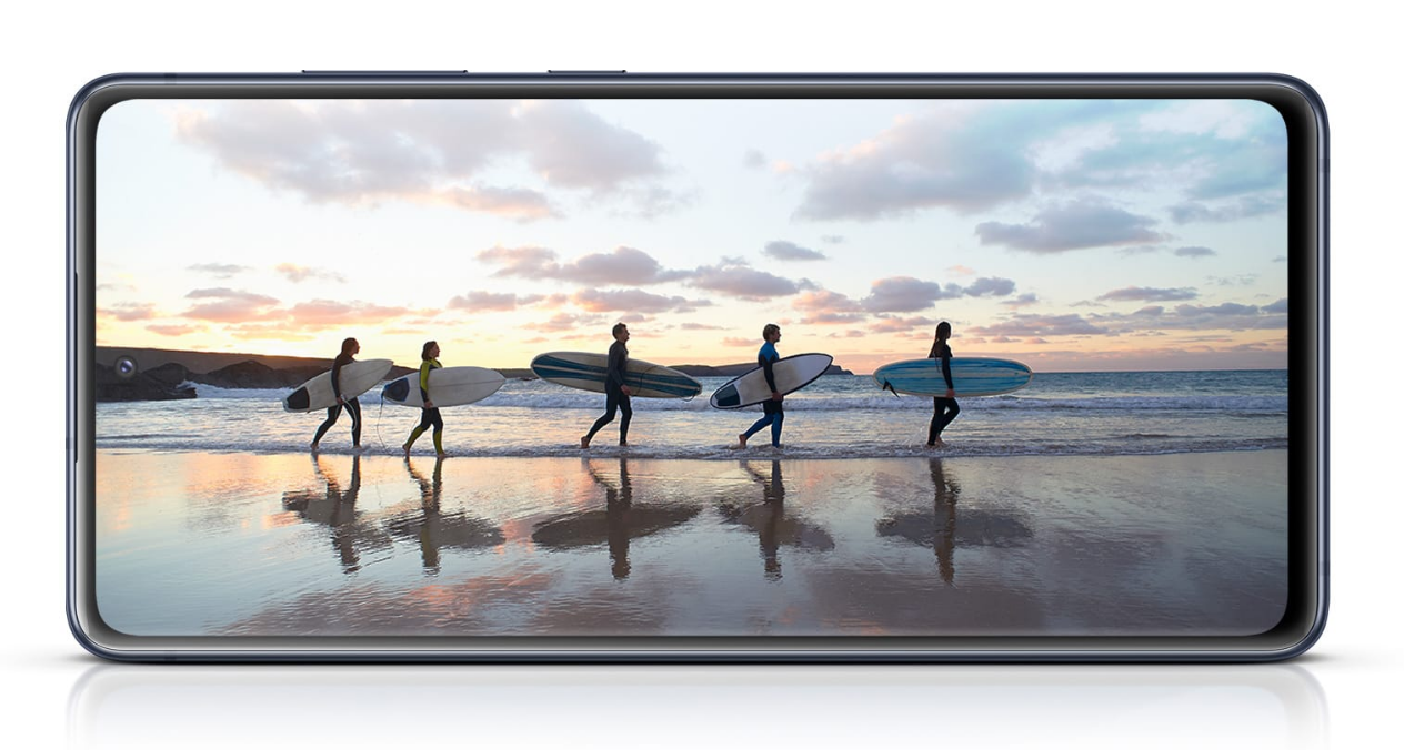 Большой безрамочный дисплей 6,5 дюйма типа Infinity-O выполнен по технологии SuperAMOLED — это означает потрясающие контраст и краски. Поддерживается и воспроизведение контента HDR10+. Разрешение FullHD+ позволит наслаждаться видео в высоком разрешении. Но главное — это, конечно, высокая частота обновления 120 Гц, которая может быть включена постоянно. Так все анимации интерфейса, пролистывания сайтов и лент соцсетей будут выглядеть максимально плавно.
