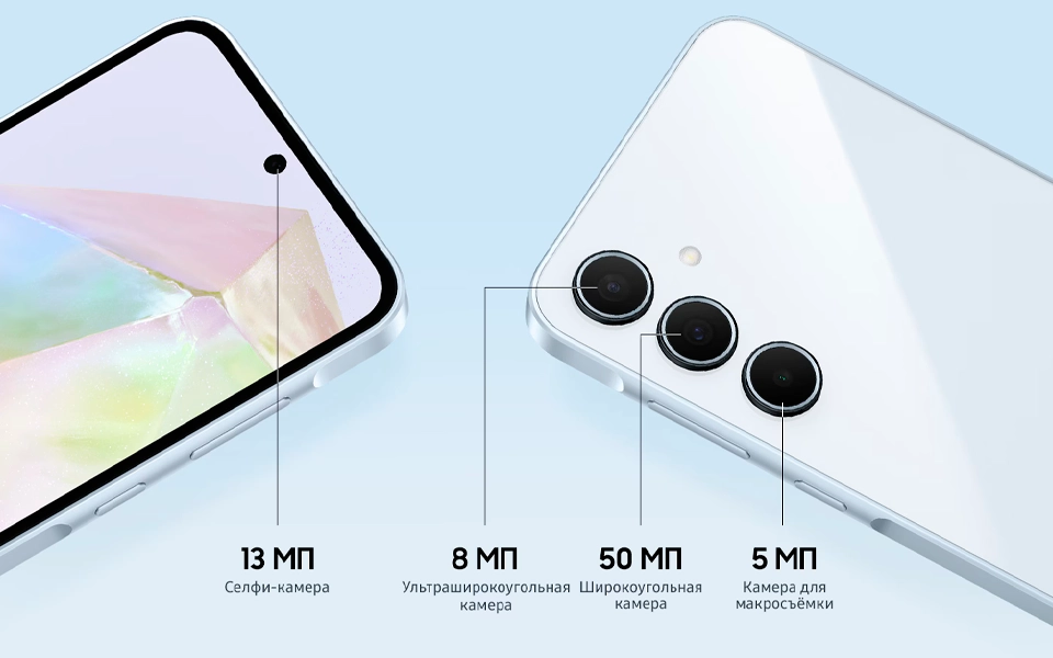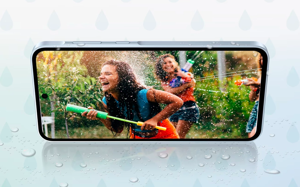 Samsung Galaxy A35 — смартфон с большим четким дисплеем, качественной системой камер и производительным процессором. За счет влагозащиты по стандарту IP67 устройство можно кратковременно погружать на глубину до 1 метра под воду.