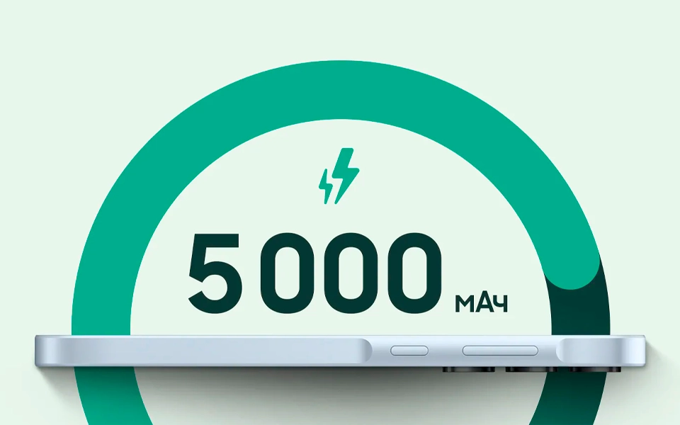 Батареи на 5 000 мА*ч хватает на целый день активного использования устройства. За 30 минут питания от сети смартфон восполняет примерно 50 % заряда.