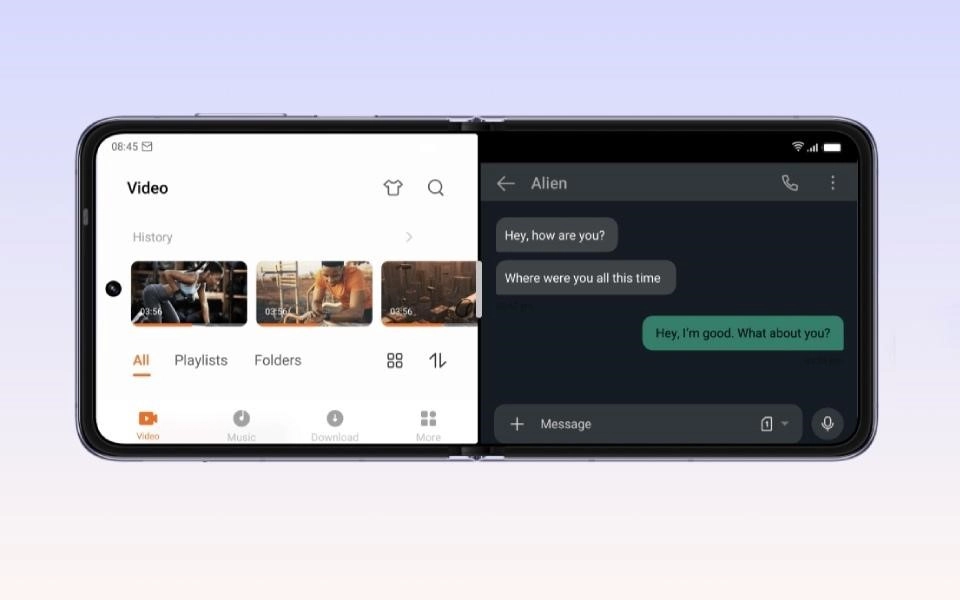 Смартфон легко складывается и раскладывается за счет надежного поворотного механизма. Для него применили материалы, которые используются в аэрокосмической области. По заверениям производителя, дисплей выдерживает более 200 000 складываний. В сложенном виде устройство помещается в любой карман. Вес смартфона составляет 194 г. При раскладывании устройство можно зафиксировать в промежуточных положениях от 30 до 150 градусов, что дает возможность подобрать оптимальное положение для работы.