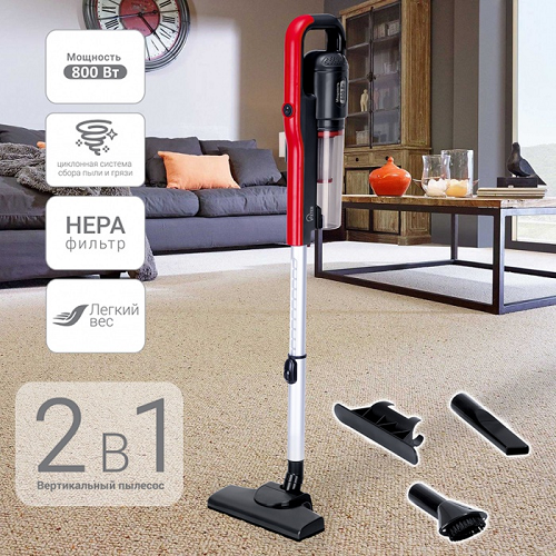Легкий и маневренный вертикальный пылесос для сухой уборки жилых и коммерческих помещений. С его помощью можно пылесосить не только полы, но и мягкую мебель, салон автомобиля — отсоединив трубку и превратив устройство в компактное ручное. Длинный сетевой шнур не сковывает движений, малый вес не вызывает усталости.