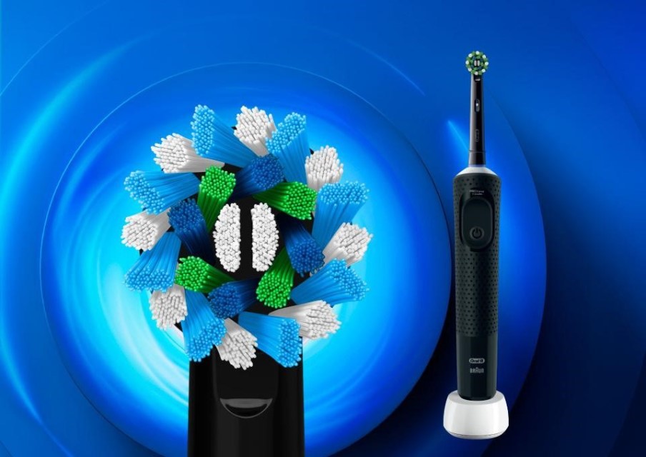 Braun Oral-B Vitality Pro ― набор из двух зубных щеток и пары насадок разных цветов. Предназначен для бережного очищения полости рта. Головки с щетиной средней жесткости совершают возвратно-поступательные движения, эффективно удаляя остатки пищи и налет с эмали. Параллельно они бережно и аккуратно массируют десны, улучшая циркуляцию крови.