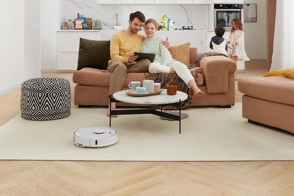 Roborock S7 использует ультразвук для распознавания типа поверхности. На ламинате, плитке или линолеуме устройство способно проводить одновременно сухую и влажную уборку. При попадании на ковер подача воды прекратится, а швабра поднимется чуть выше уровня пола. После возвращения на док-станцию насадка для влажной уборки также поднимается, блокируя жидкость.