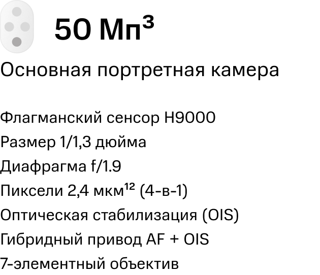 3. 50 Мп — разрешение сенсора основной камеры. Фактическое разрешение зависит от выбранного режима съемки.