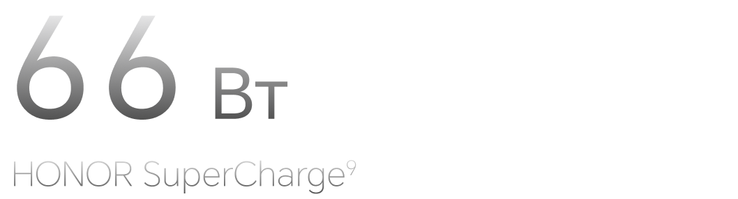 9. Максимальная мощность зарядки с использованием оригинального устройства HONOR SuperCharge — 66 Вт. Фактическая мощность зарядки зависит от сценариев использования и факторов окружающей среды